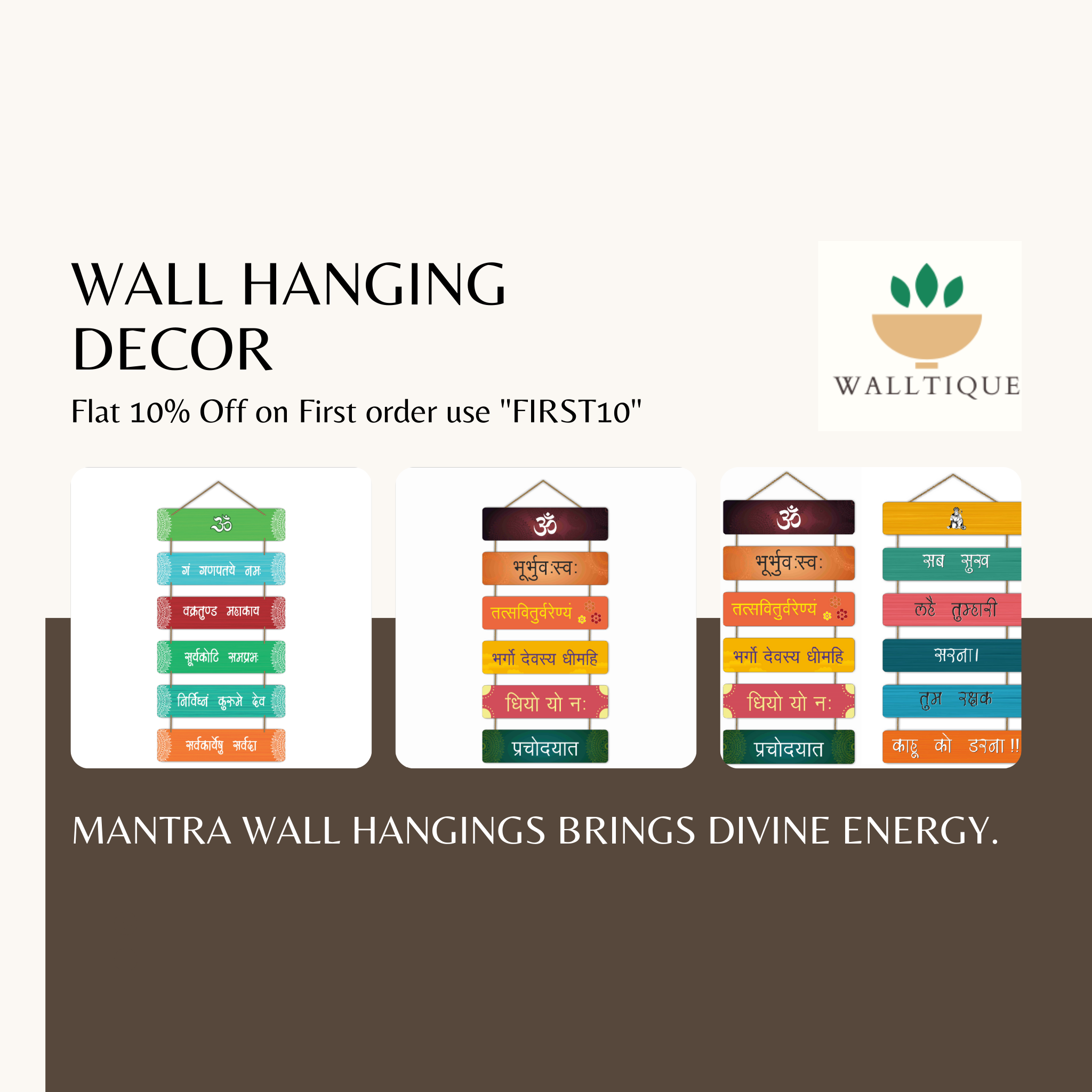 Combo Set of Gayatri Mantra Wooden Wall Hanging, Ideal Decor for Home, Living Room & Mandir